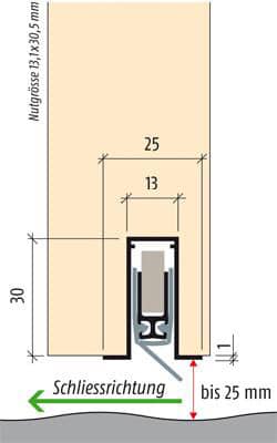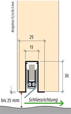 - mit Parallelabsenkung und Schrägausgleich bei 1000 mm Türbreite: 15 mm