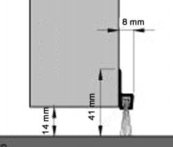 - Leiste PVC Stärke ca. 2 mm, an der Bürstenhalterung + 6 mm auftragend = 8 mm