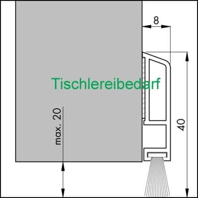 Typ PDS 40 Länge= 1 Meter Gesamthöhe: 40 mm = PVC 30 mm + Bürste 10 mm