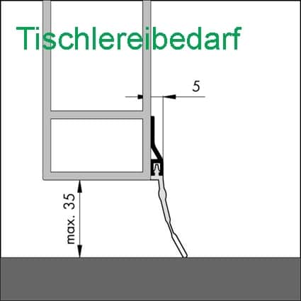 - strapazierfähige schwarze PVC-Lippe zum Abdichten von Türspalten bis max. 35 mm