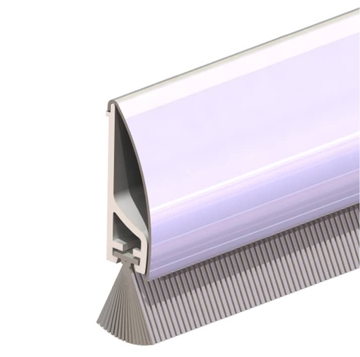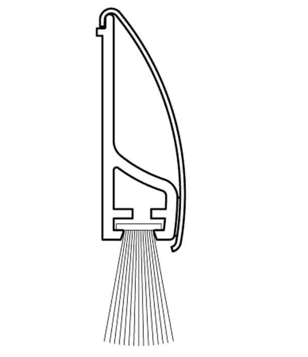- Leiste aus weißem PVC mit strapazierfähigen, grauen und weichen Velourbürsten