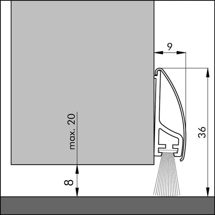 - Sie können die Leiste auch tiefer anschrauben um einen Spalt bis max. 20 mm abzudichten