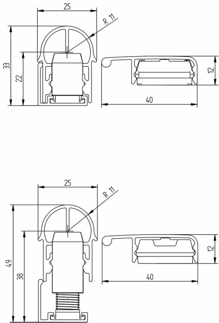 - einstellbar für Überschlag der Türblätter von 13 mm bis 28 mm
