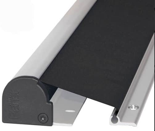 - mit integriertem, selbsttätig auf konstante Spannung ziehendem Rollo in schwarz