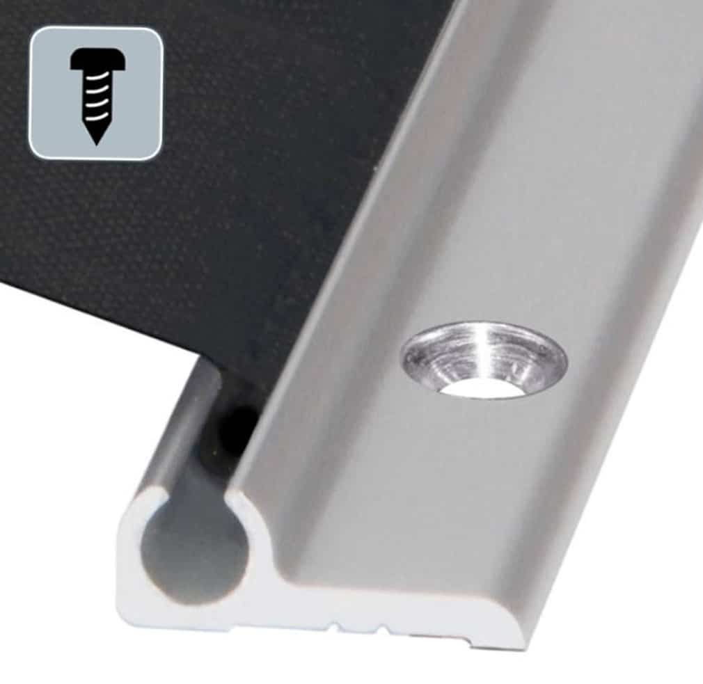 - Alugehäuse und Tuchhalteprofil einfach an die Tür und Zarge schrauben