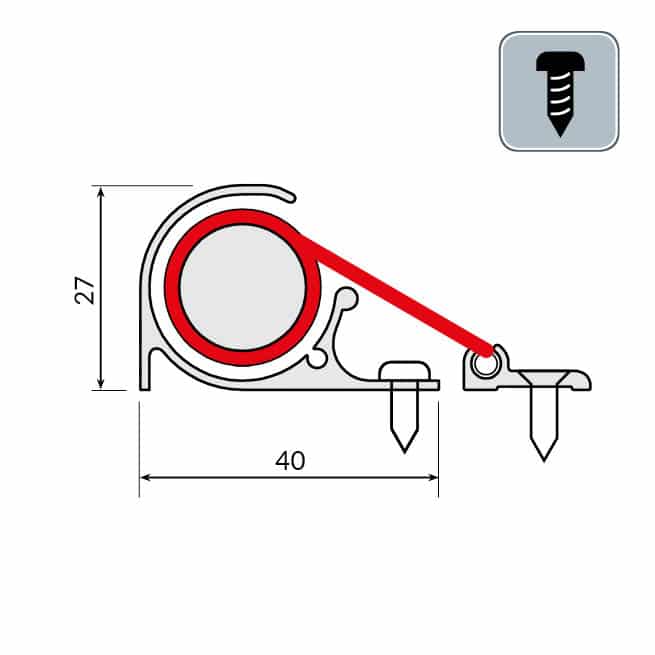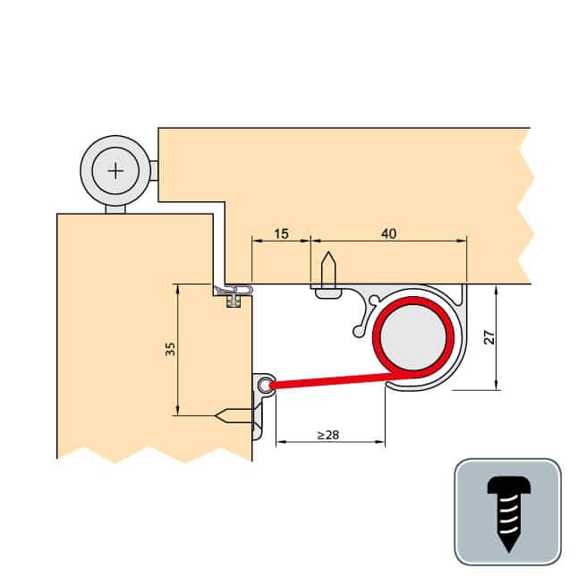 - Alugehäuse und Tuchhalteprofil einfach an die Tür und Zarge schrauben