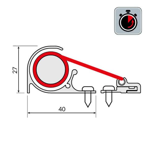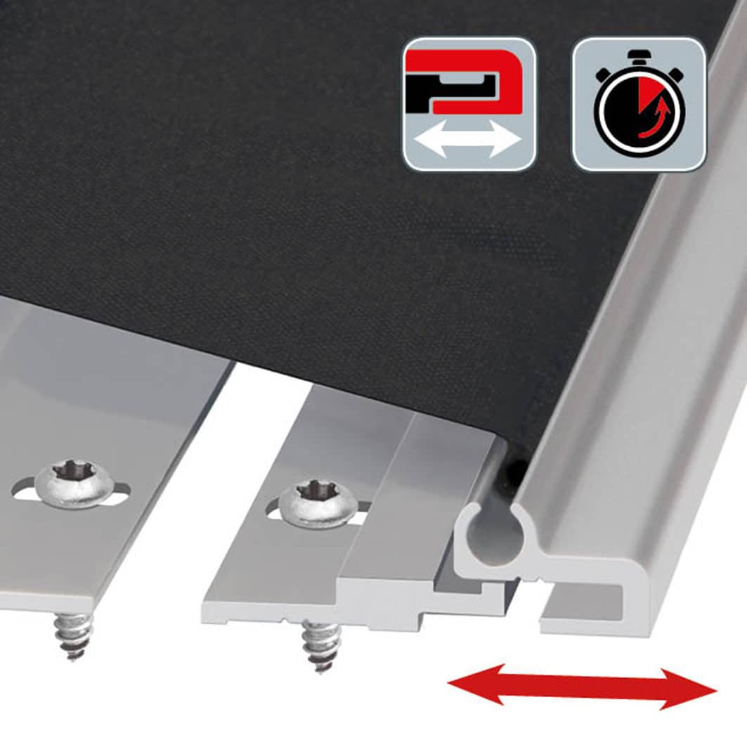 - Alugehäuse und Tuchhalteprofil einfach an die Tür und Zarge schrauben