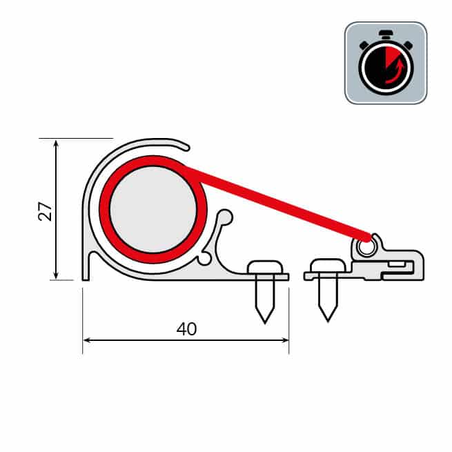 - zargenseitige Befestigungselemente mit Langlöcher zum ev. Nachstellen des Rollos