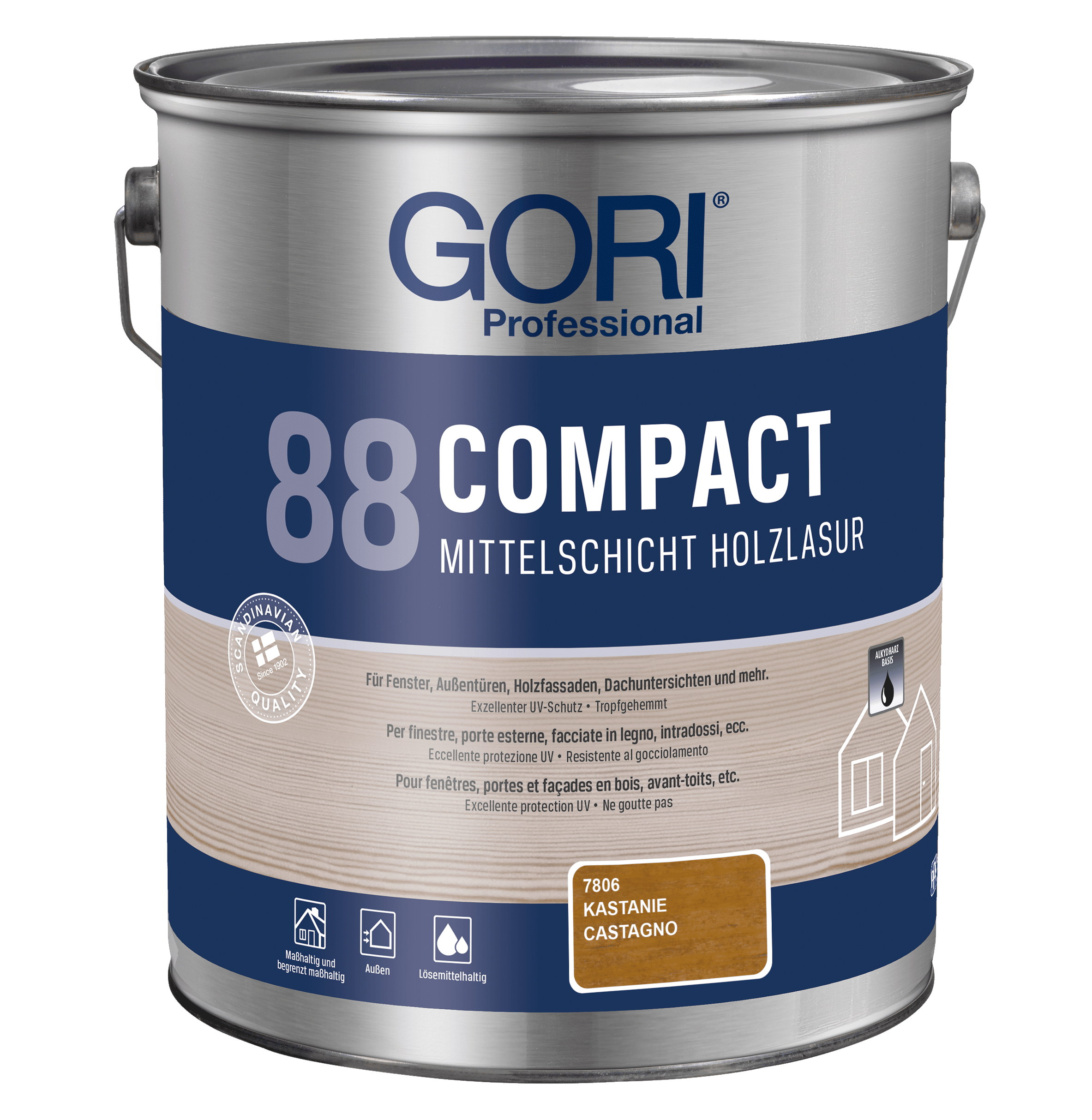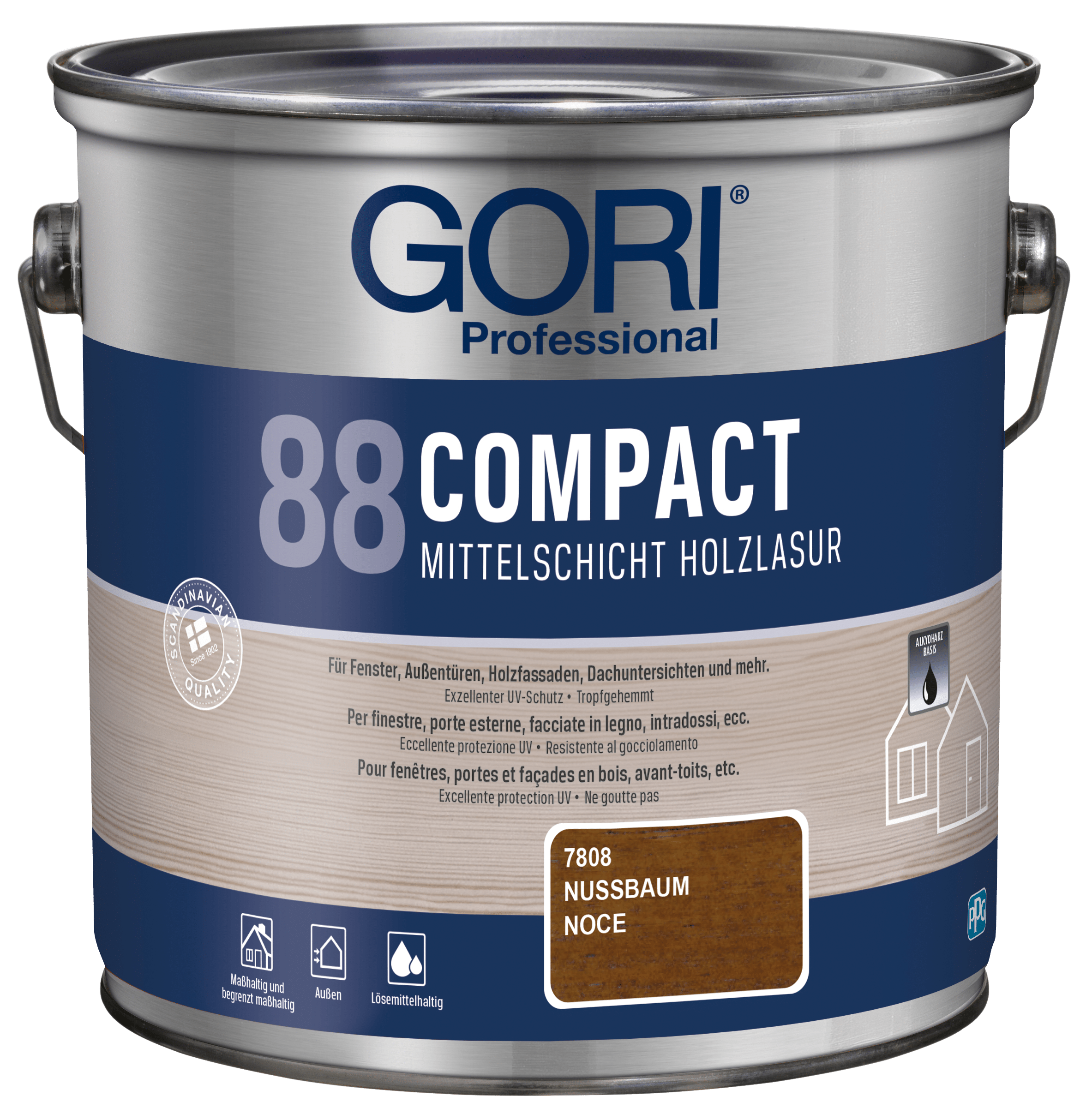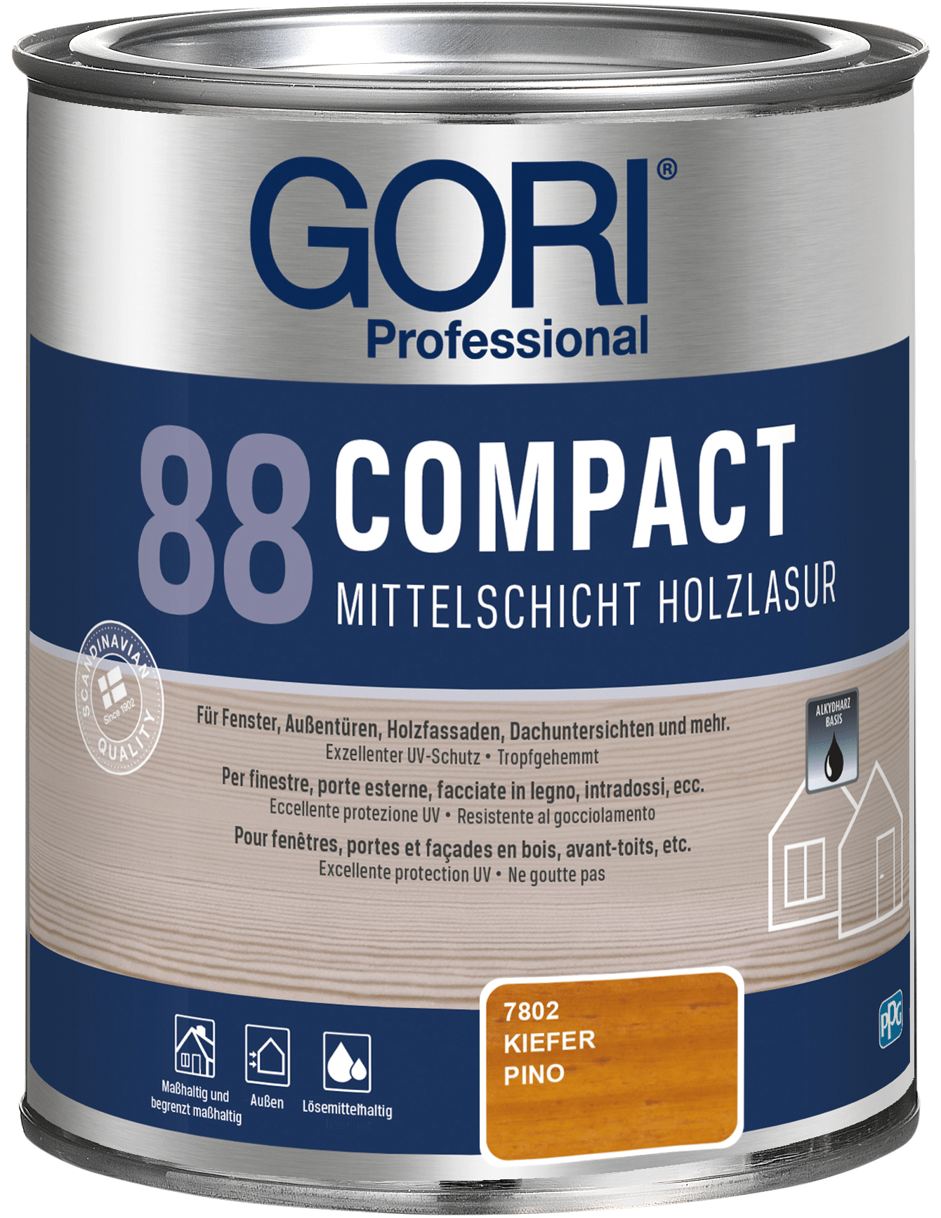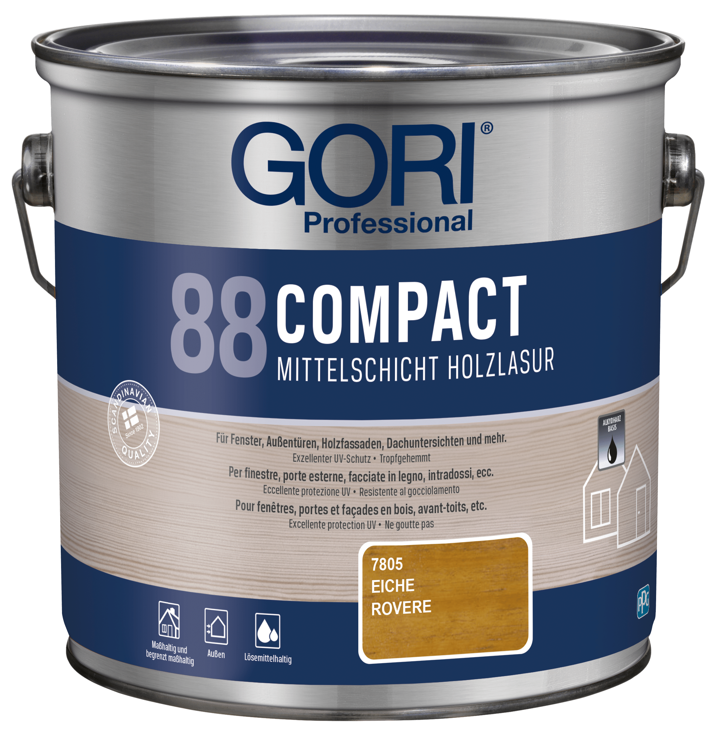 GORI 88 Compact Holzlasur ist eine lösemittelbasierte, tropfgehemmte Alkydharz-Holzlasur für alle maßhaltigen und begrenzt maßhaltigen Holzoberflächen im Außenbereich, wie z.B. Fenster, Außentüren, Holzfassaden, Dachuntersichten und mehr. Die Lasur ist besonders geeignet für Holz, das starker Verwitterung ausgesetzt ist.