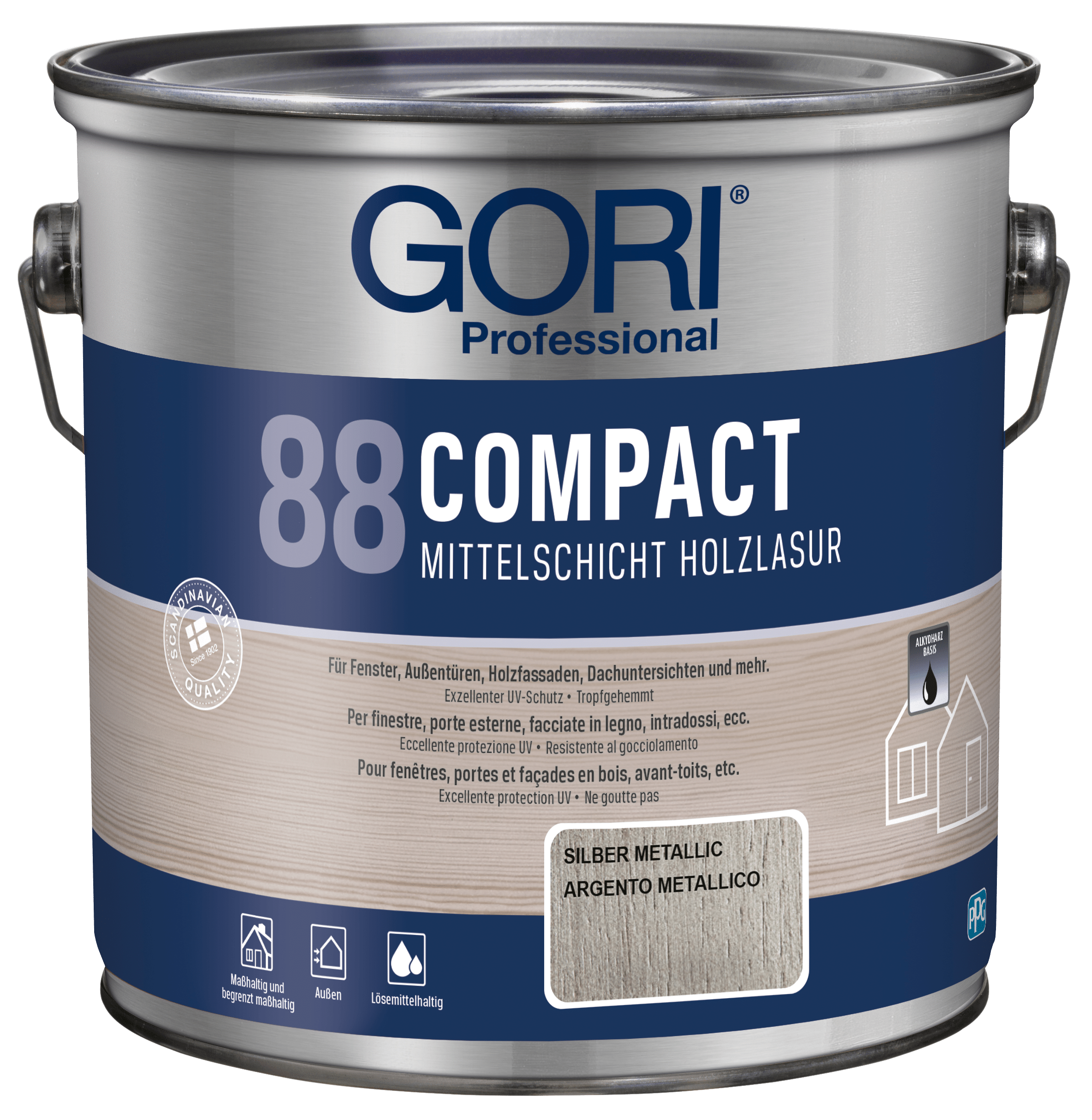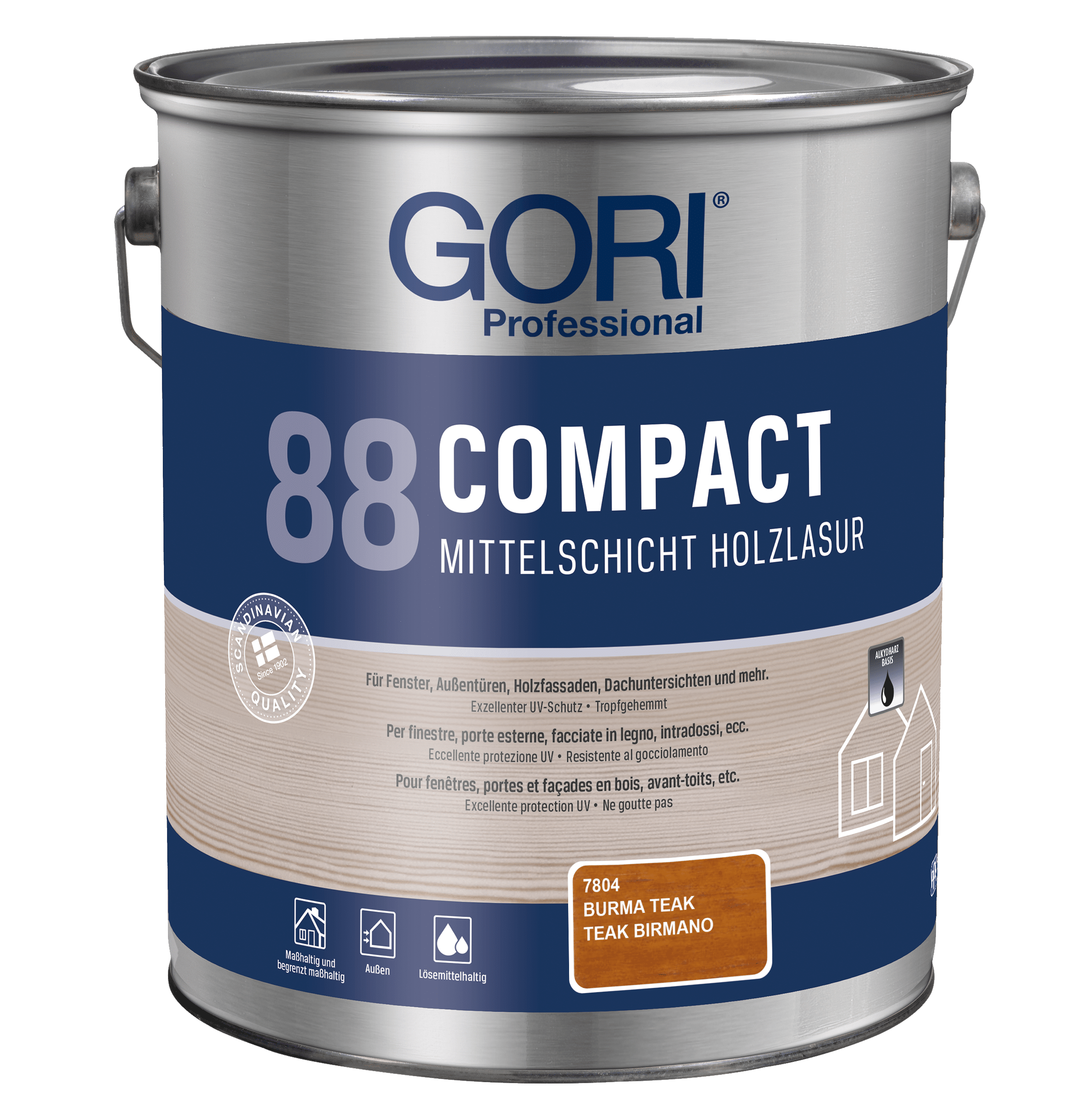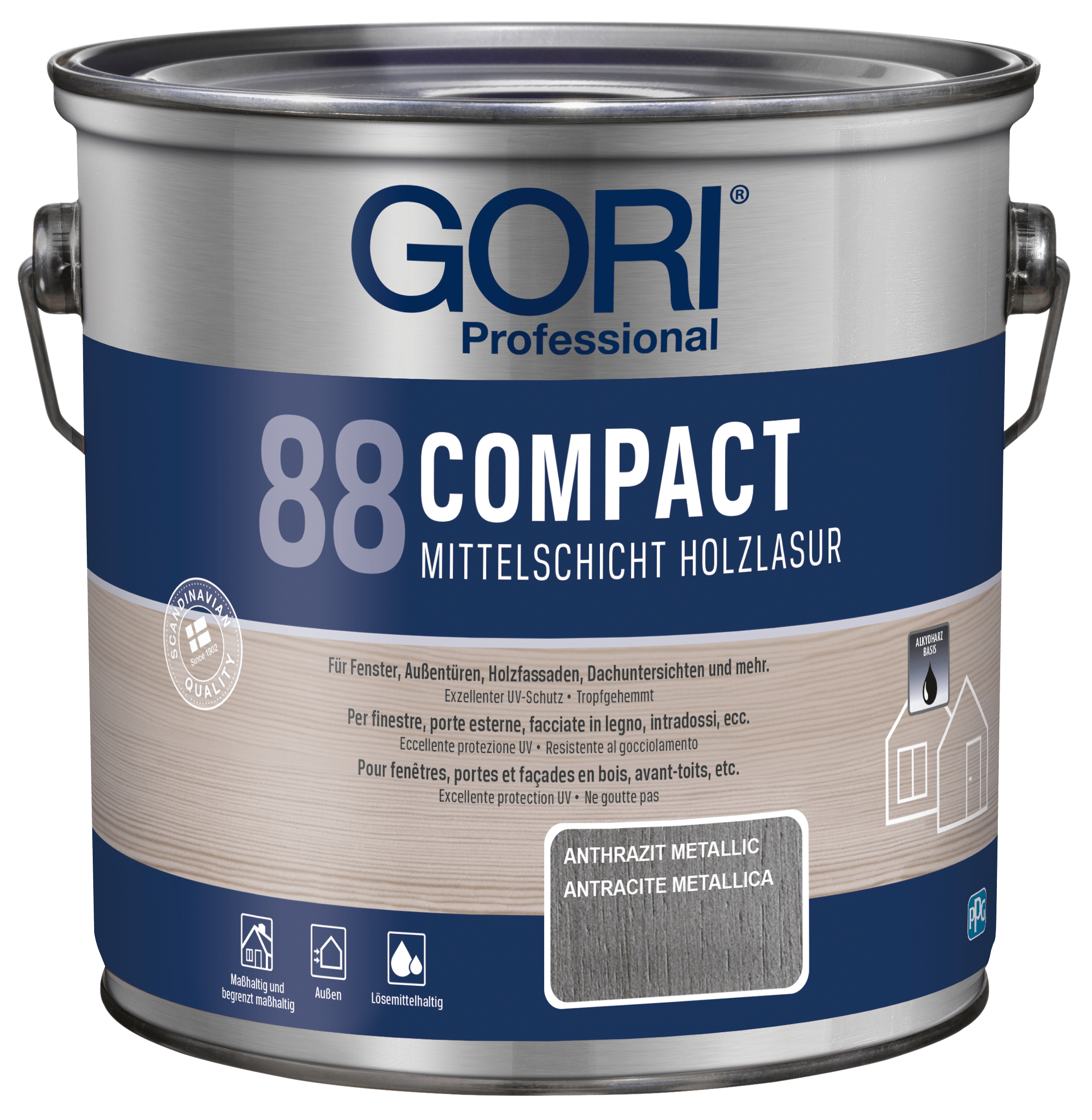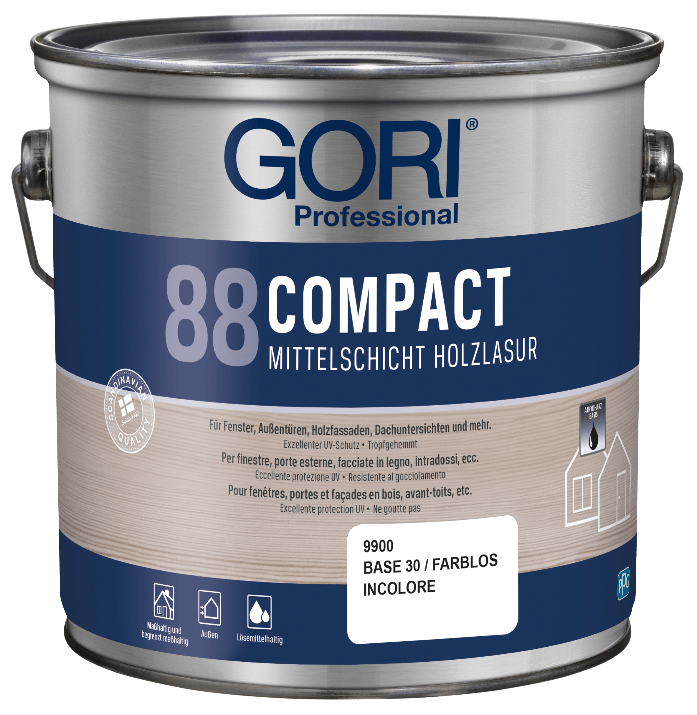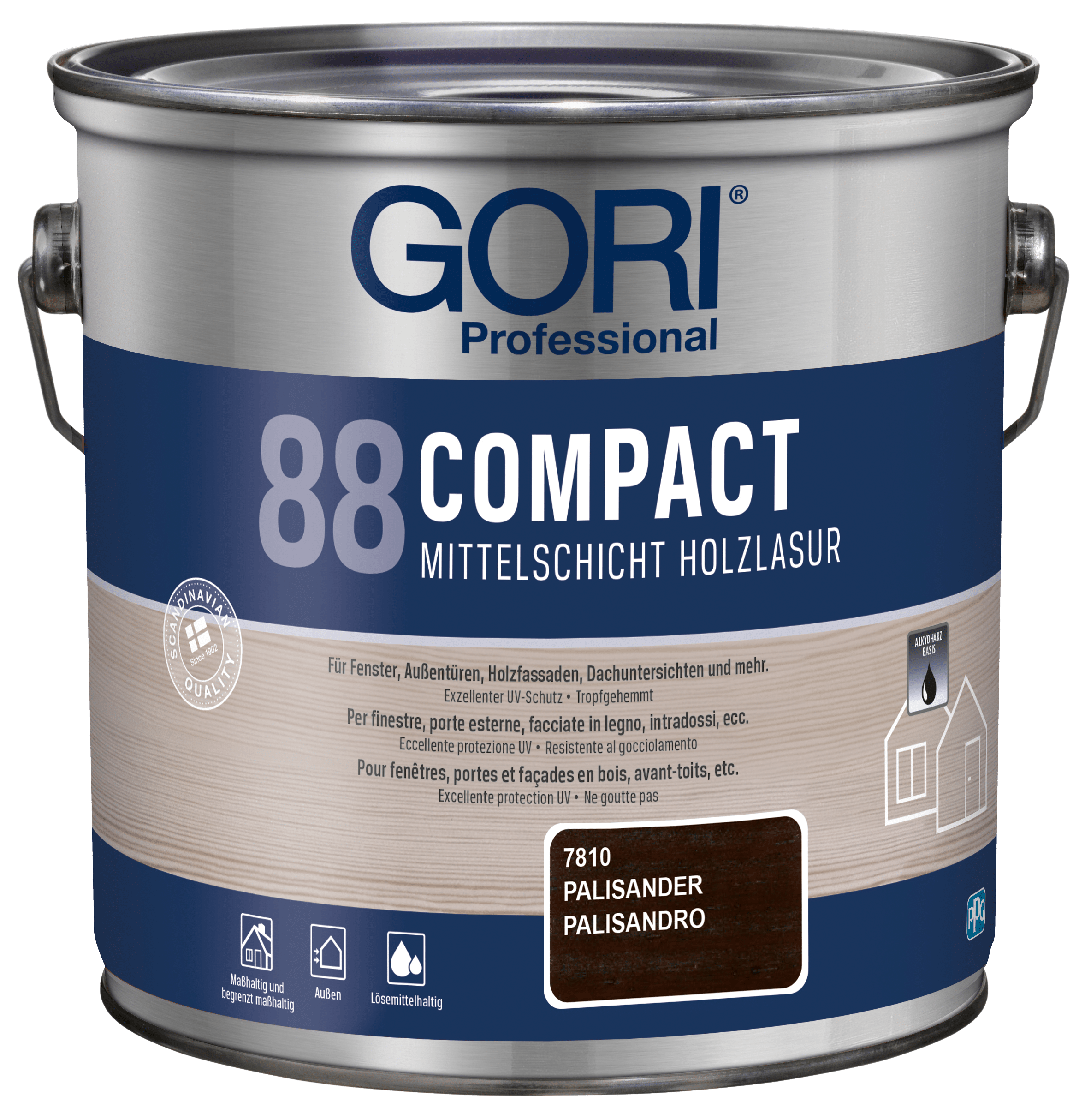 GORI 88 Compact Holzlasur ist eine lösemittelbasierte, tropfgehemmte Alkydharz-Holzlasur für alle maßhaltigen und begrenzt maßhaltigen Holzoberflächen im Außenbereich, wie z.B. Fenster, Außentüren, Holzfassaden, Dachuntersichten und mehr. Die Lasur ist besonders geeignet für Holz, das starker Verwitterung ausgesetzt ist.
