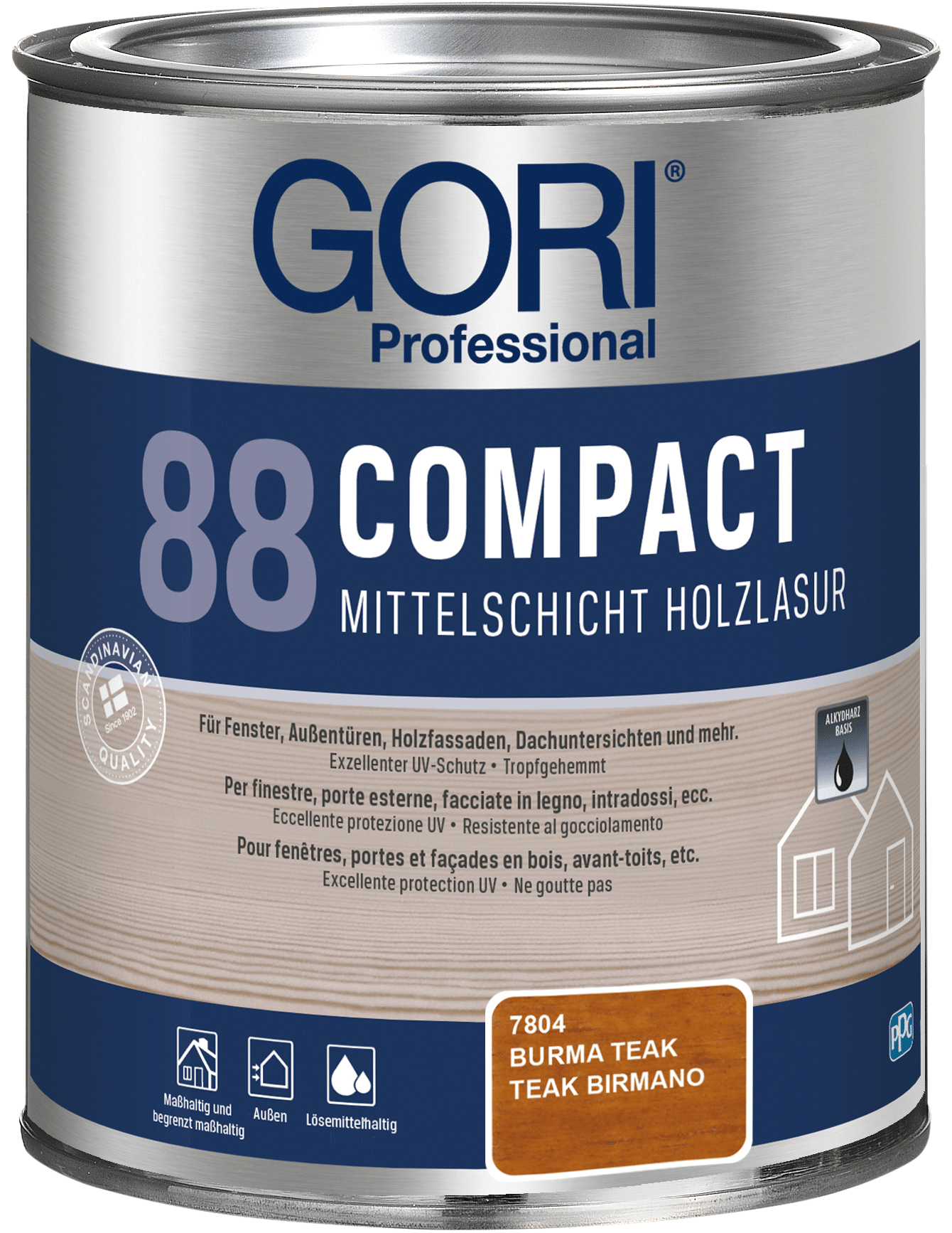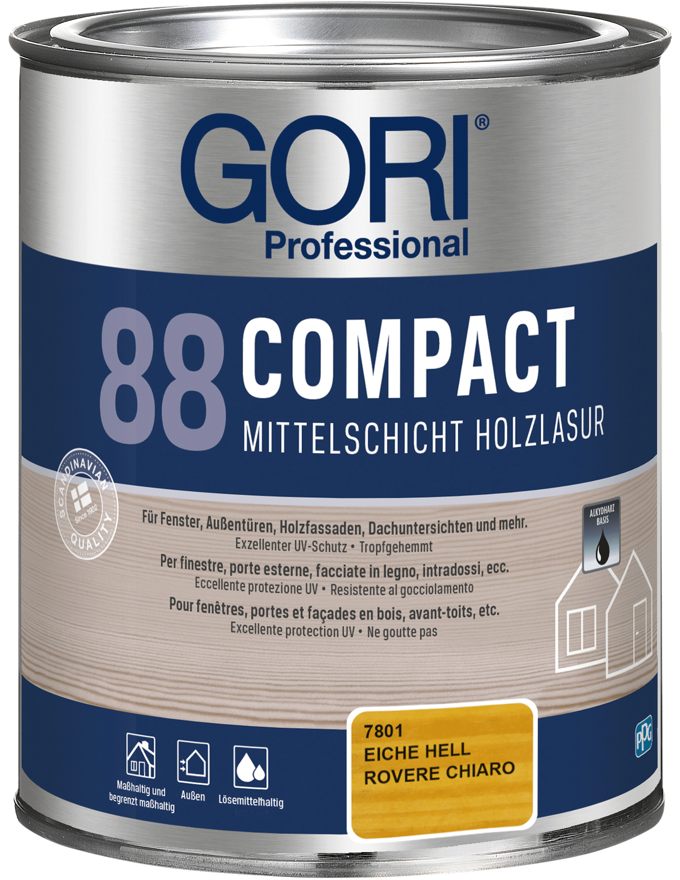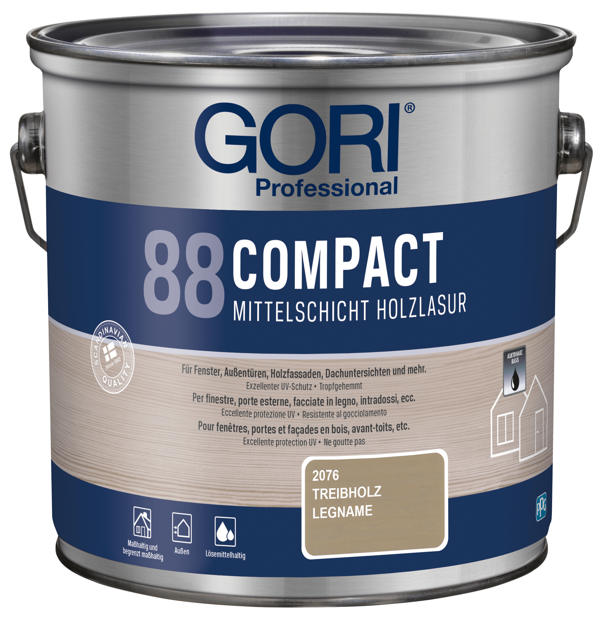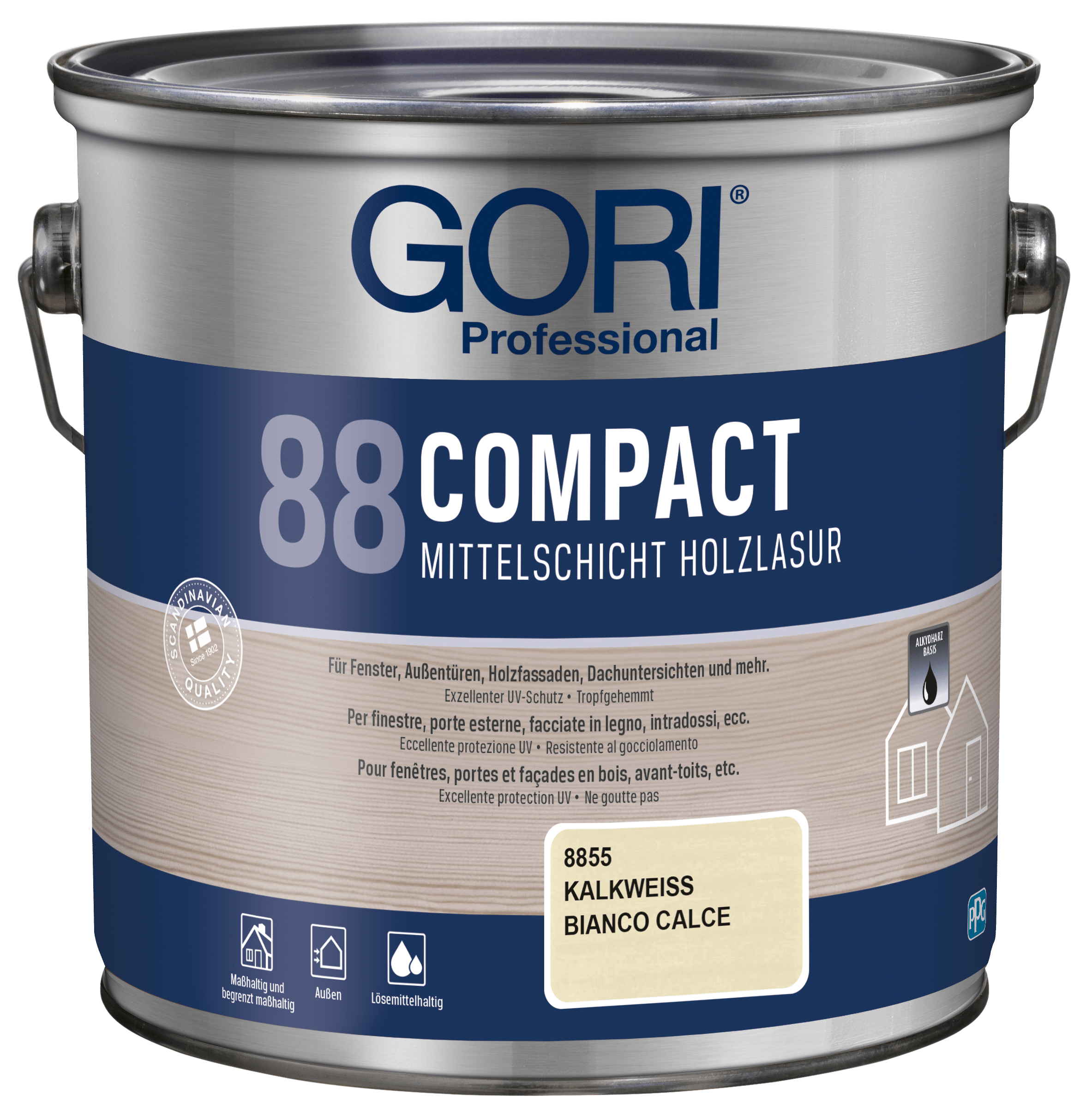 GORI 88 Compact Holzlasur ist eine lösemittelbasierte, tropfgehemmte Alkydharz-Holzlasur für alle maßhaltigen und begrenzt maßhaltigen Holzoberflächen im Außenbereich, wie z.B. Fenster, Außentüren, Holzfassaden, Dachuntersichten und mehr. Die Lasur ist besonders geeignet für Holz, das starker Verwitterung ausgesetzt ist.