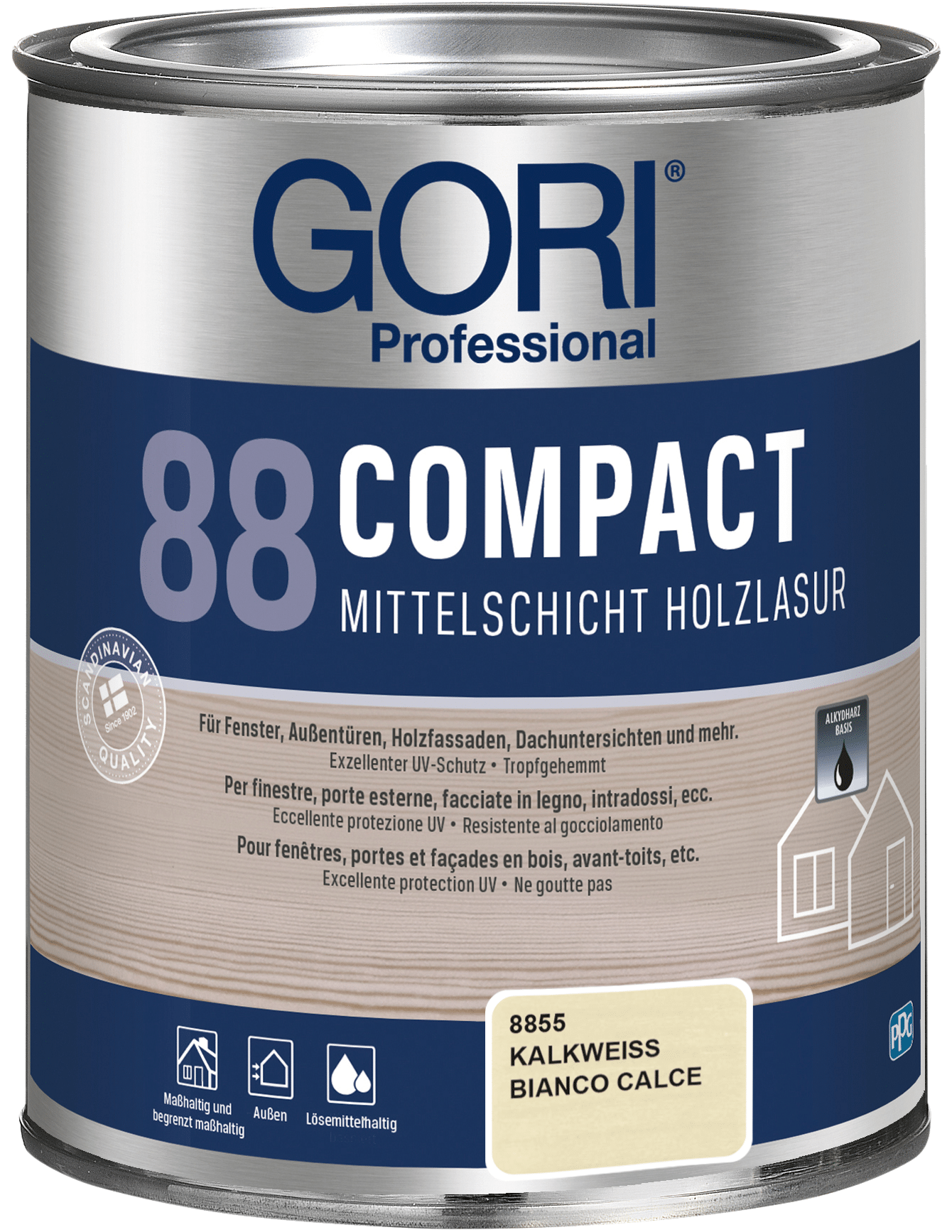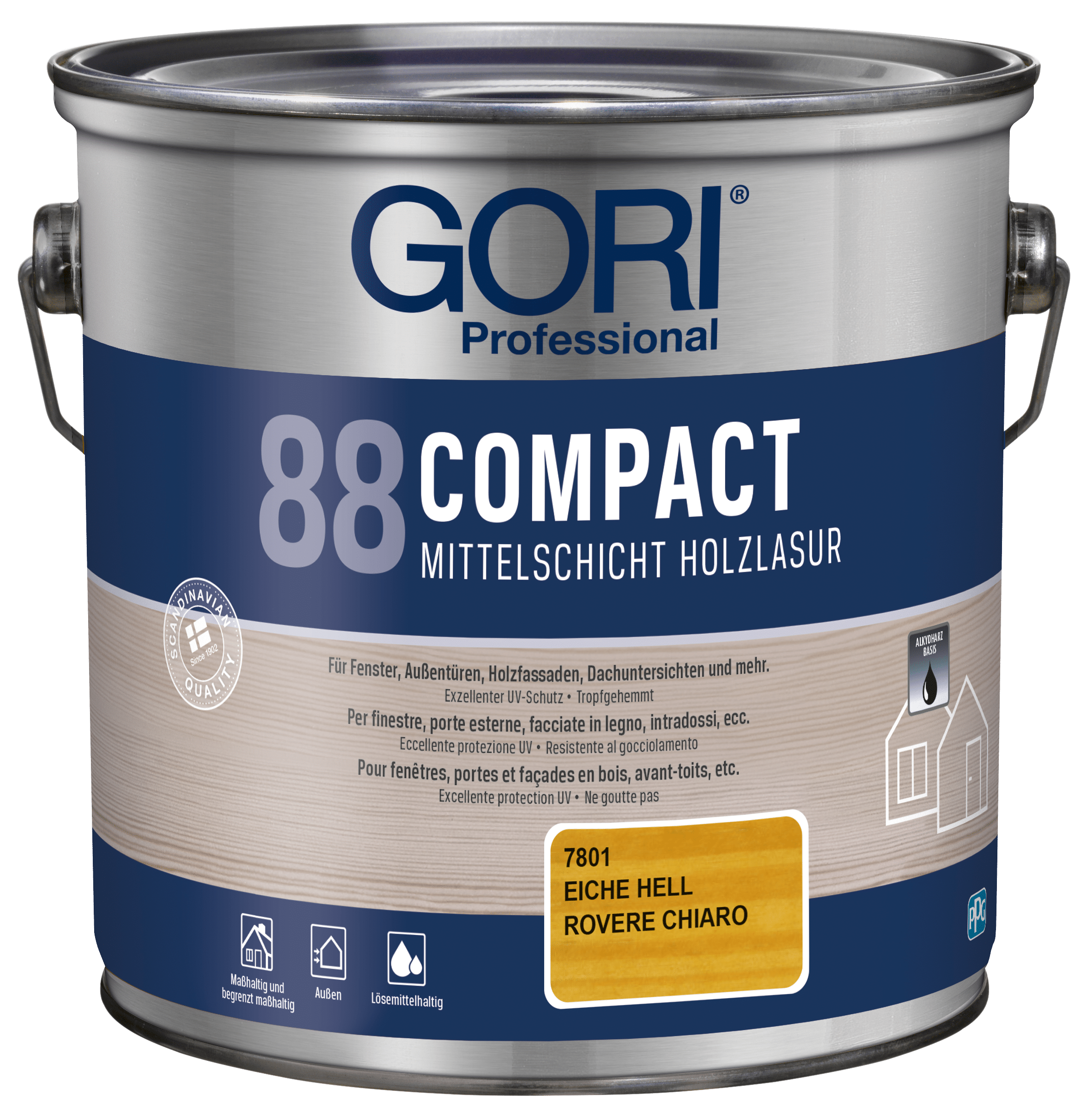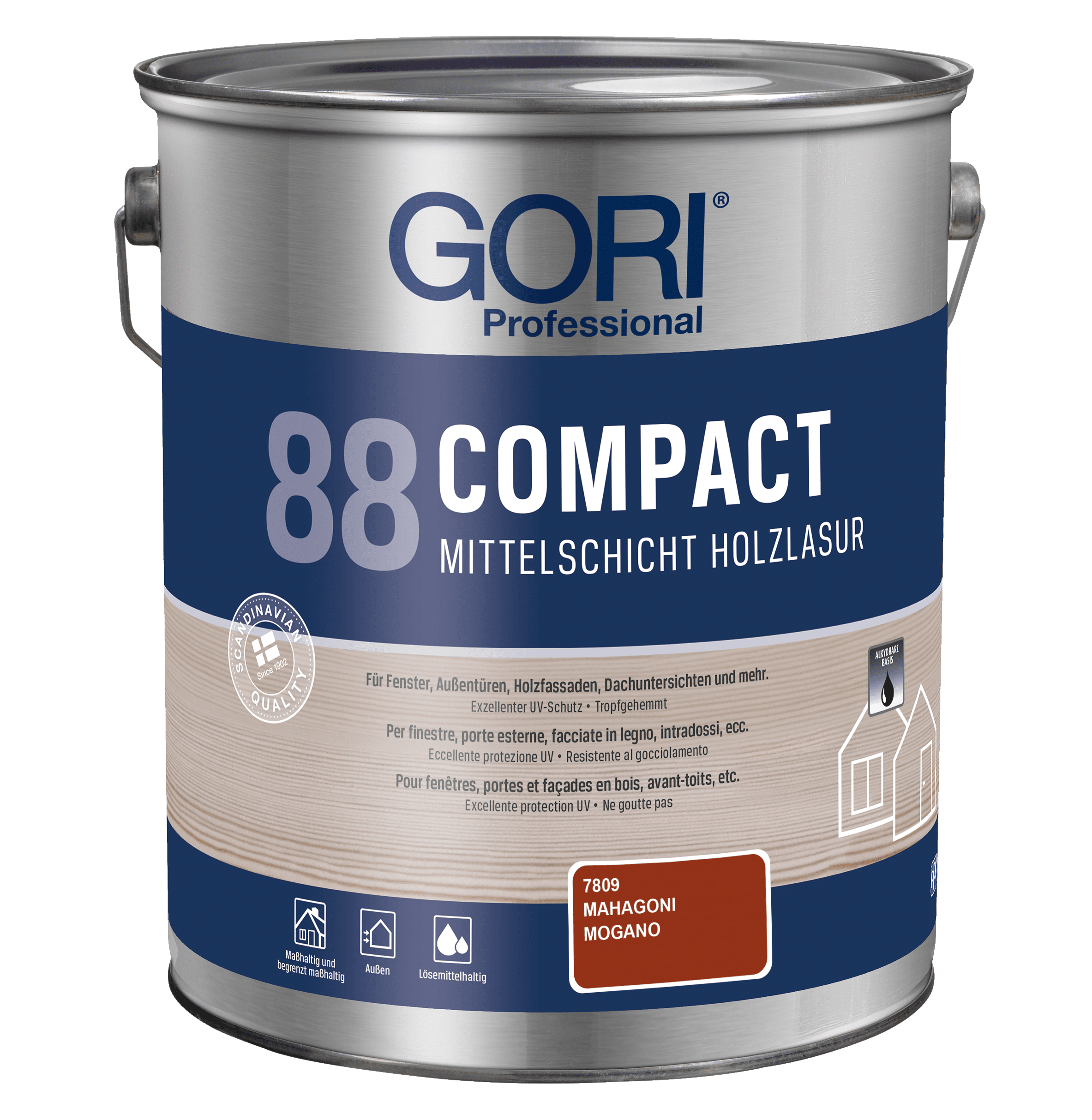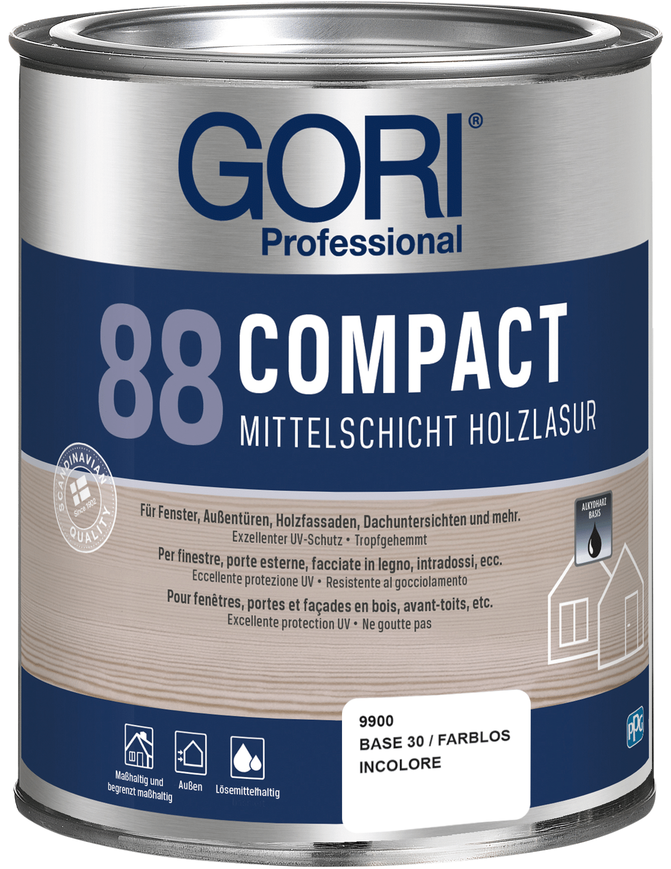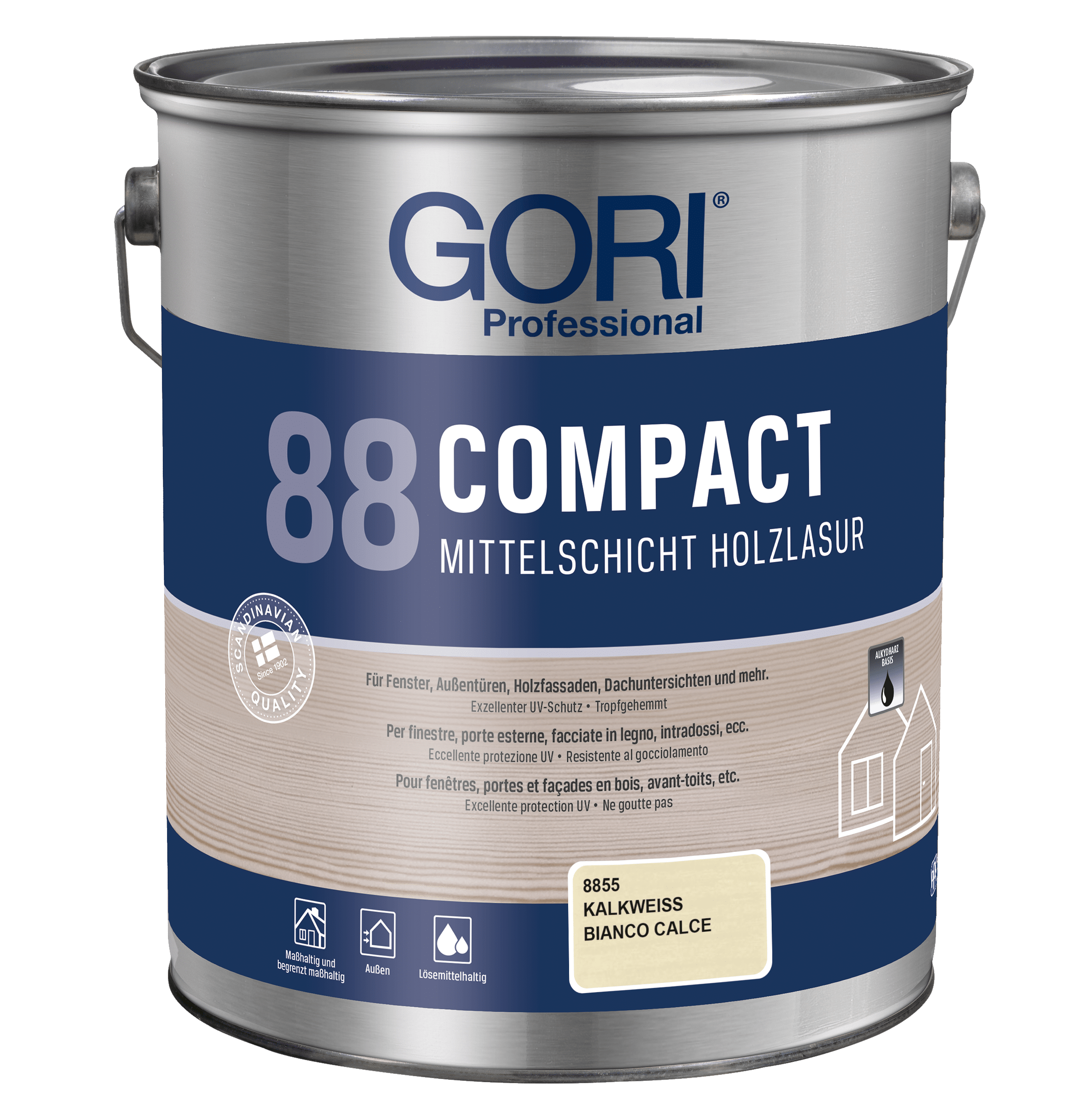 GORI 88 Compact Holzlasur ist eine lösemittelbasierte, tropfgehemmte Alkydharz-Holzlasur für alle maßhaltigen und begrenzt maßhaltigen Holzoberflächen im Außenbereich, wie z.B. Fenster, Außentüren, Holzfassaden, Dachuntersichten und mehr. Die Lasur ist besonders geeignet für Holz, das starker Verwitterung ausgesetzt ist.