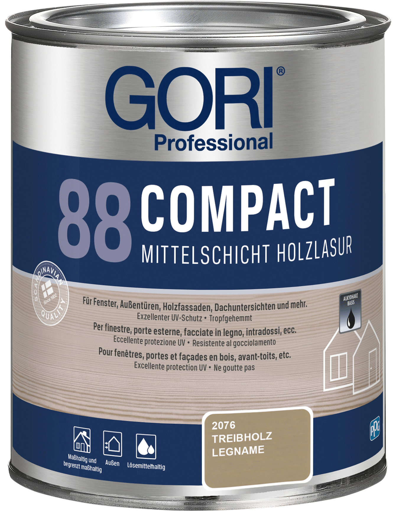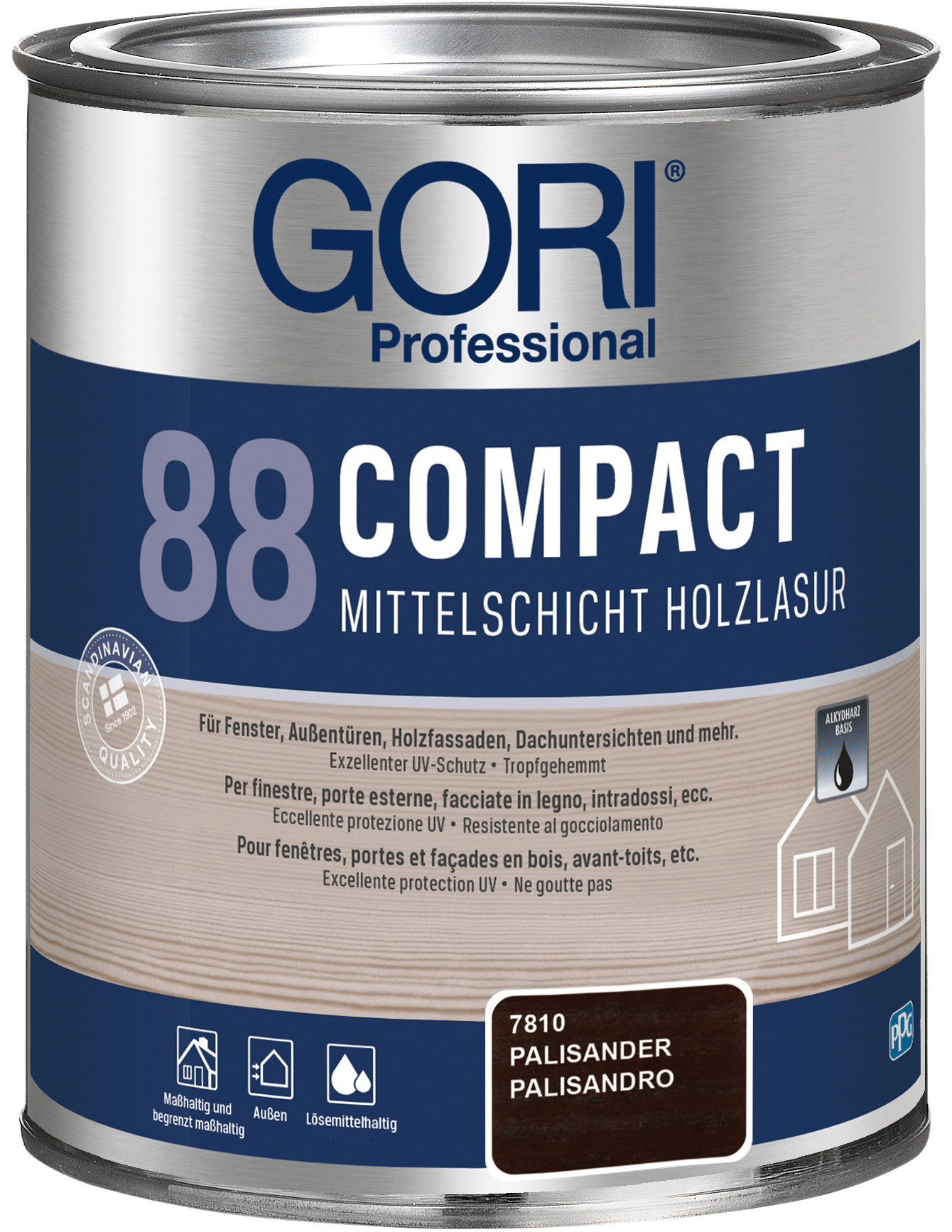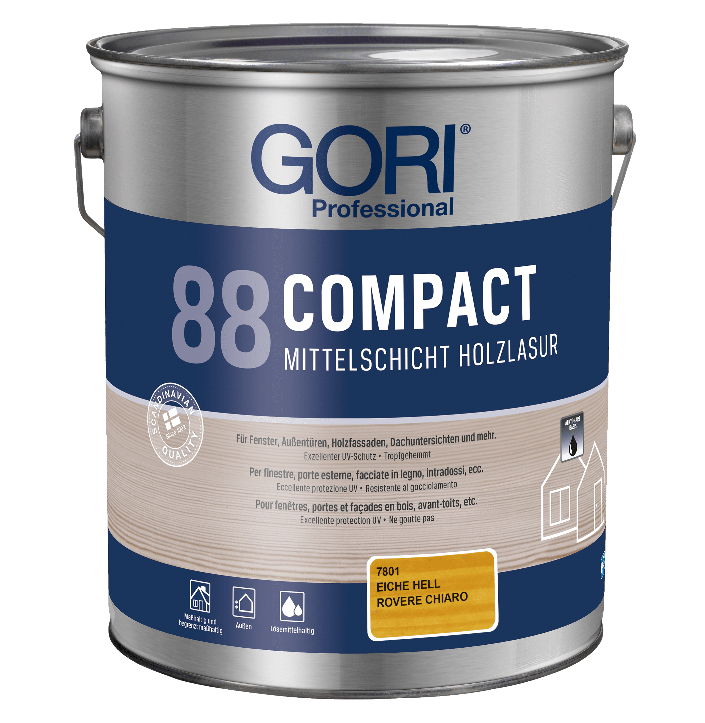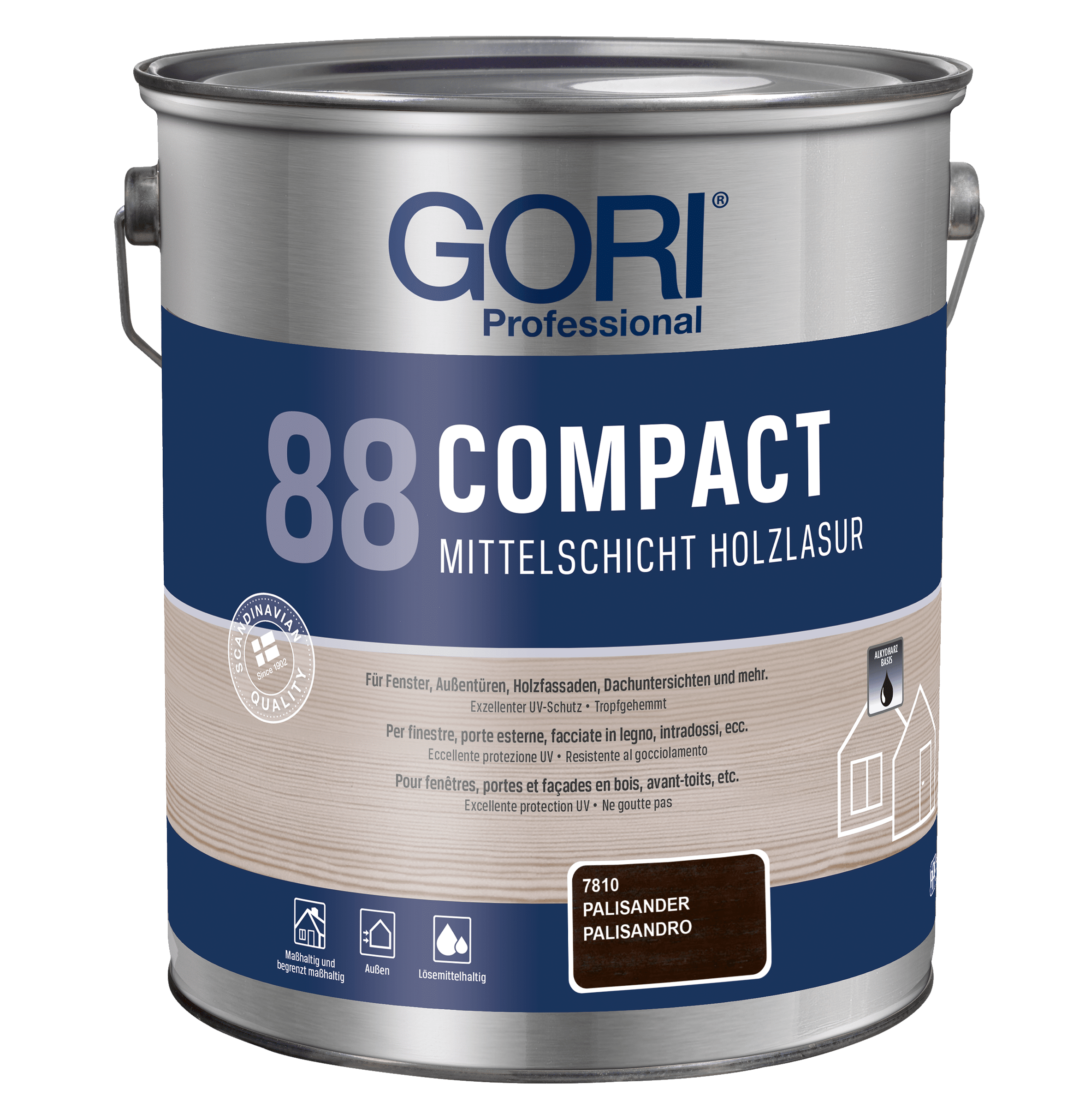 GORI 88 Compact Holzlasur ist eine lösemittelbasierte, tropfgehemmte Alkydharz-Holzlasur für alle maßhaltigen und begrenzt maßhaltigen Holzoberflächen im Außenbereich, wie z.B. Fenster, Außentüren, Holzfassaden, Dachuntersichten und mehr. Die Lasur ist besonders geeignet für Holz, das starker Verwitterung ausgesetzt ist.