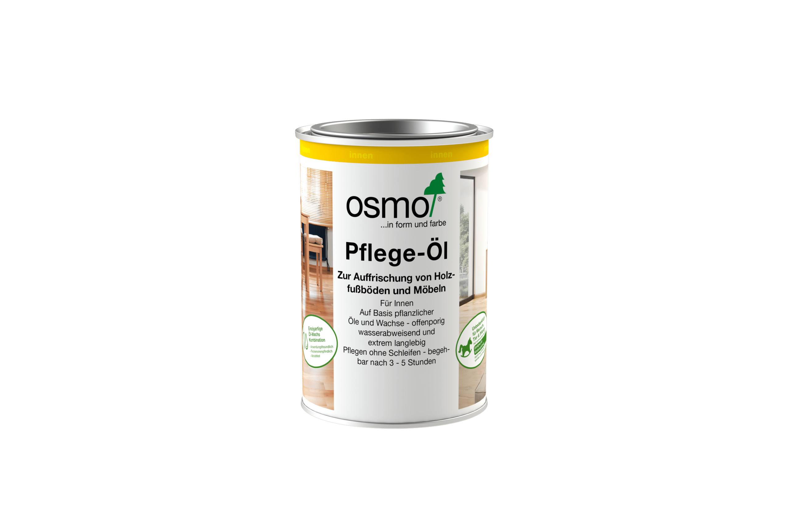 Osmo Pflege-Öl dient der Grund- und Unterhaltspflege von geölten oder gewachsten Holzfußböden. Stumpfe und matte Böden werden mit Pflege-Öl aufgefrischt.