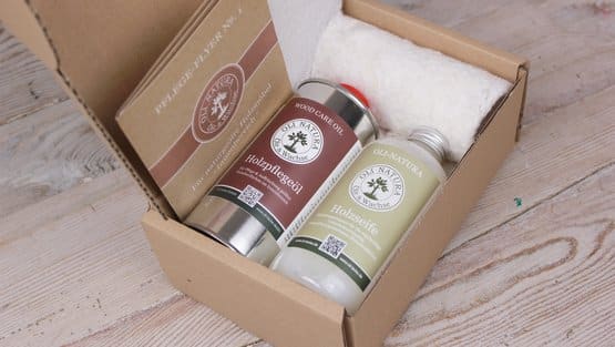 Praktisches Pflege-Set für die Reinigung und Pflege von naturgeölten Holzmöbeln