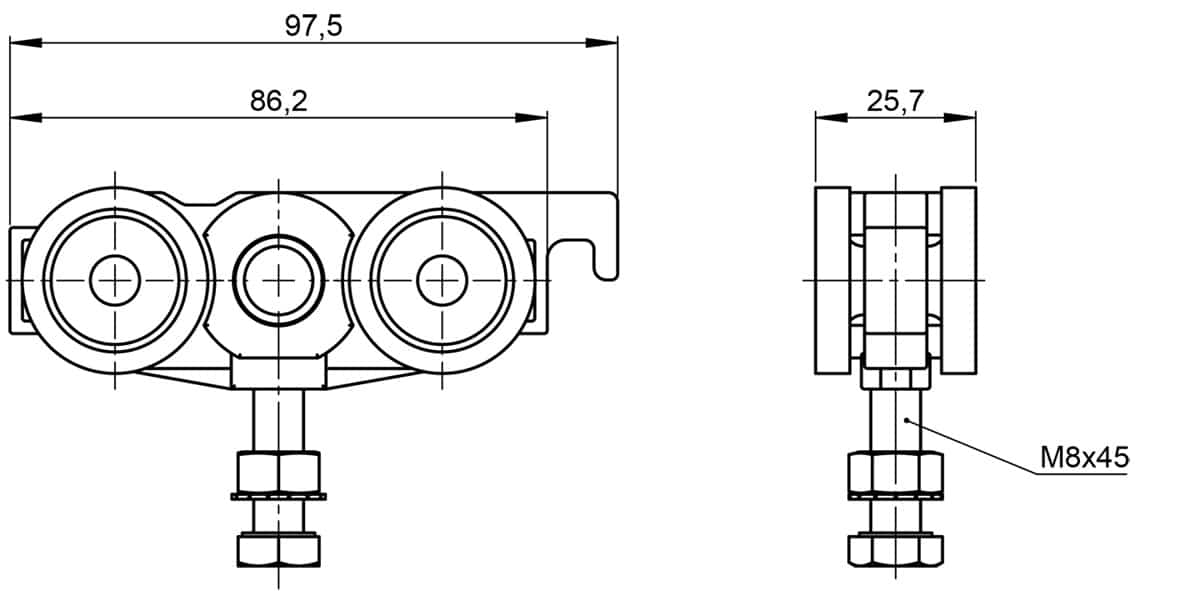 - Rollapparate kugelgelagert, Tragschrauben Edelstahl M8 x 45 mm
