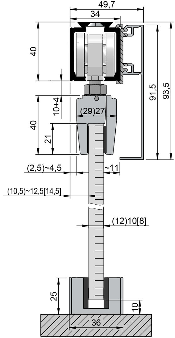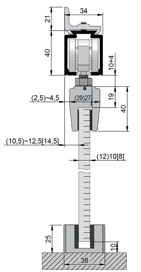 - für 1-flügelige Glasschiebetüren aus ESG Glas 8 mm oder 10 mm
