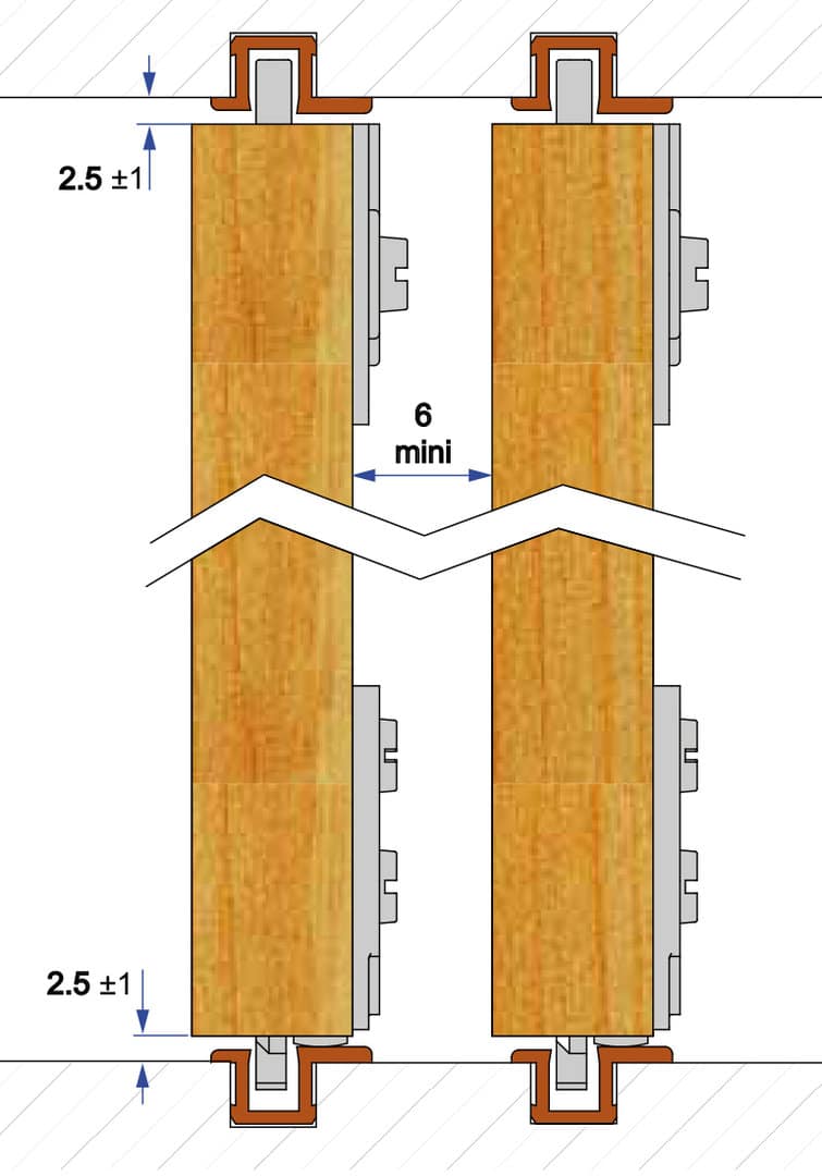 - PICO 25W-200cm in braun 1 Set = für 2 Stück Türen – für 2 bodengeführte Türen hintereinander in je 2 Kunststoffschienen zum Einfräsen – – für Türstärken von ca. 16 bis 30 mm