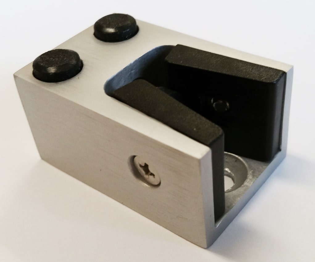 - untererer Anschlagpuffer ALU Nr. 200 G silber eloxiert Helm Artikelnummer 200040006002 für Glastüren von 8 bis 12 mm Stärke Länge Tiefe Höhe Innenhöhe 50 mm 33 mm 25 mm 4 mm – Glasstärke ist stufenlos verstellbar – – ein versenktes Bohrloch 5