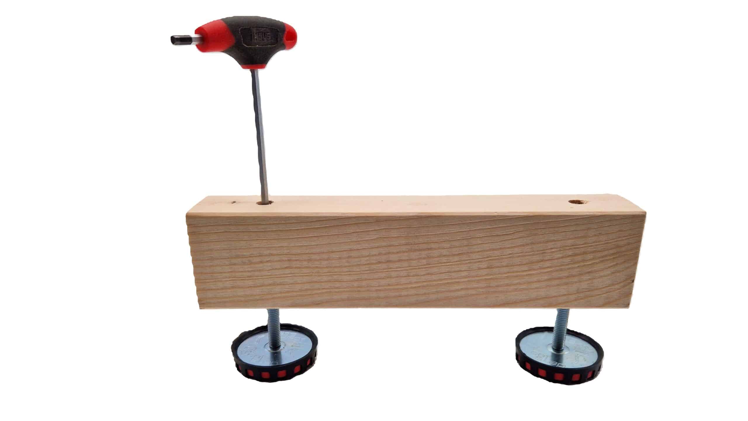 Fußbodendistanzschrauben, stufenloser Höhenausgleich bis 3,5 cm, Belastbarkeit 500 kg pro Stück;