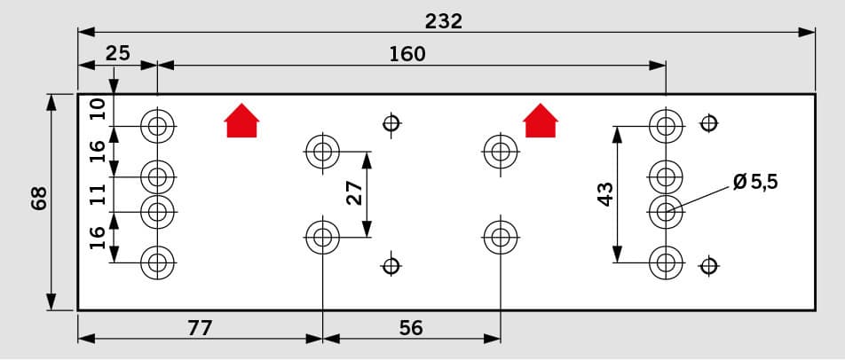 - DORMA Montageplatte silber 68 x 232 x 5 mm Zur Befestigung an Türen