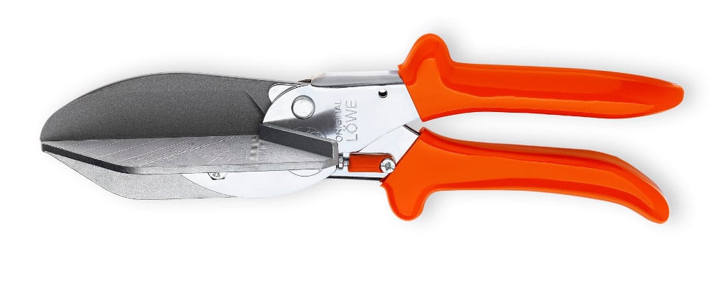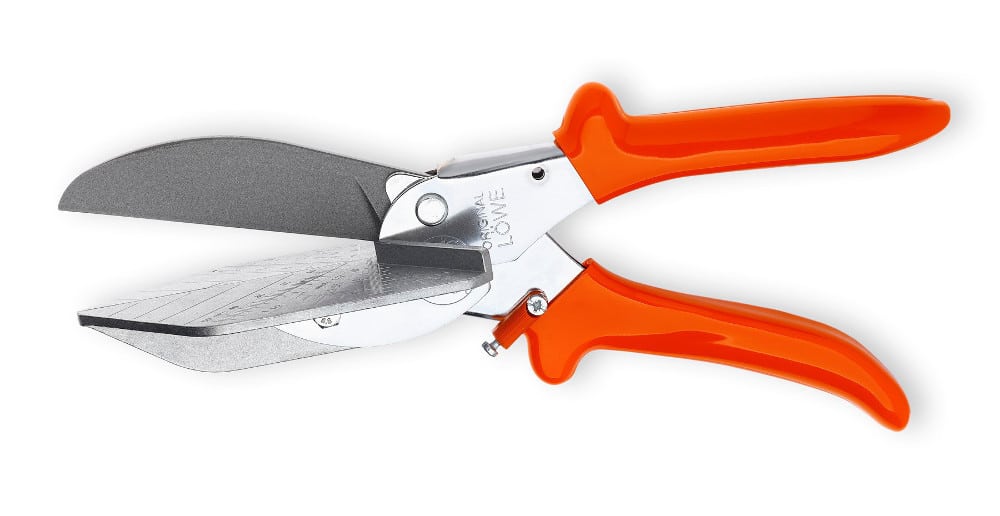 1 Paar LÖWE Anschlag für Gehrungen 45 ° für die Leistenschere 3.606/HU mit Rändelschraube und Mutter (ohne Schere) für den Zuschnitt von stärkeren Kunststoffleisten und Kabelkanälen auf 45° Gehrung