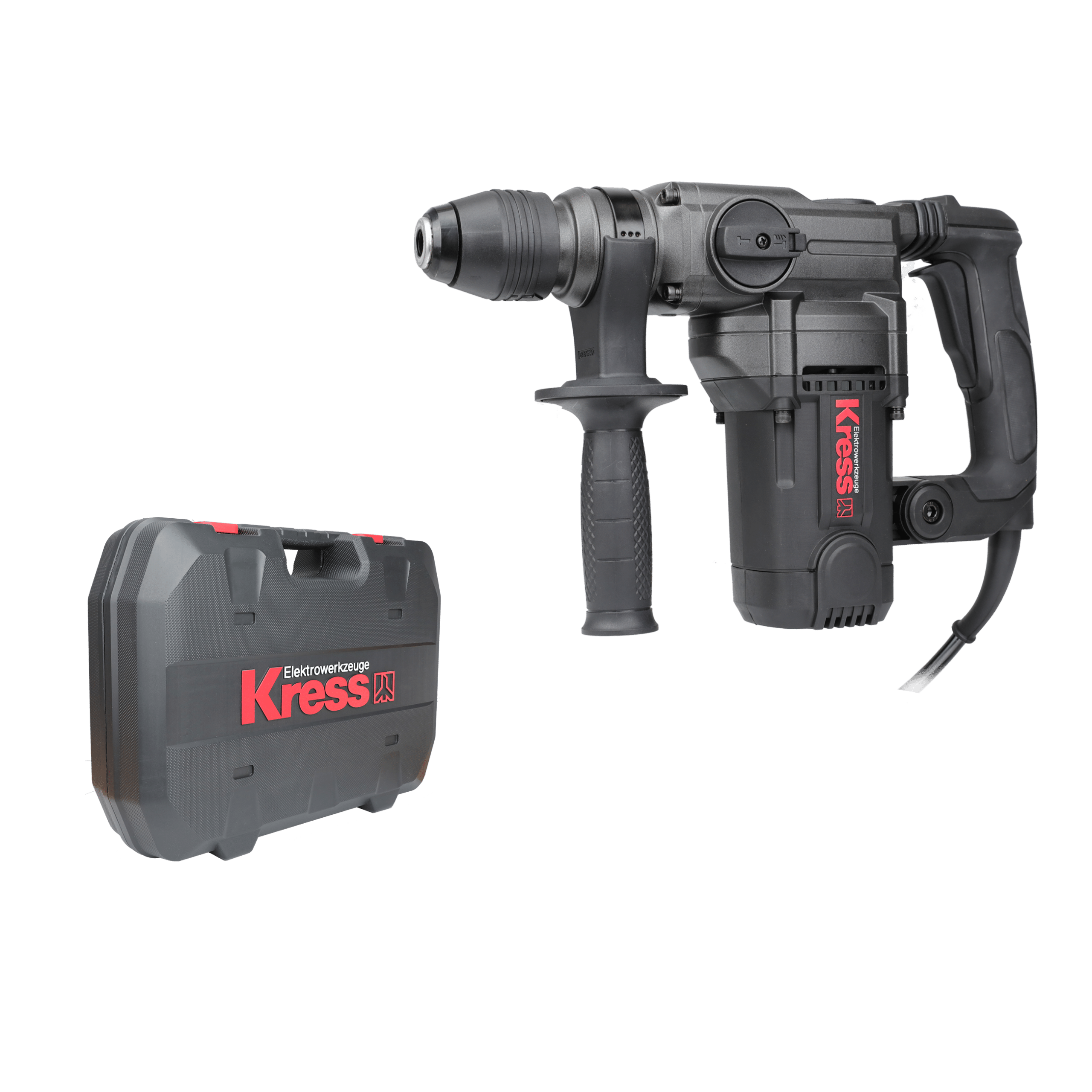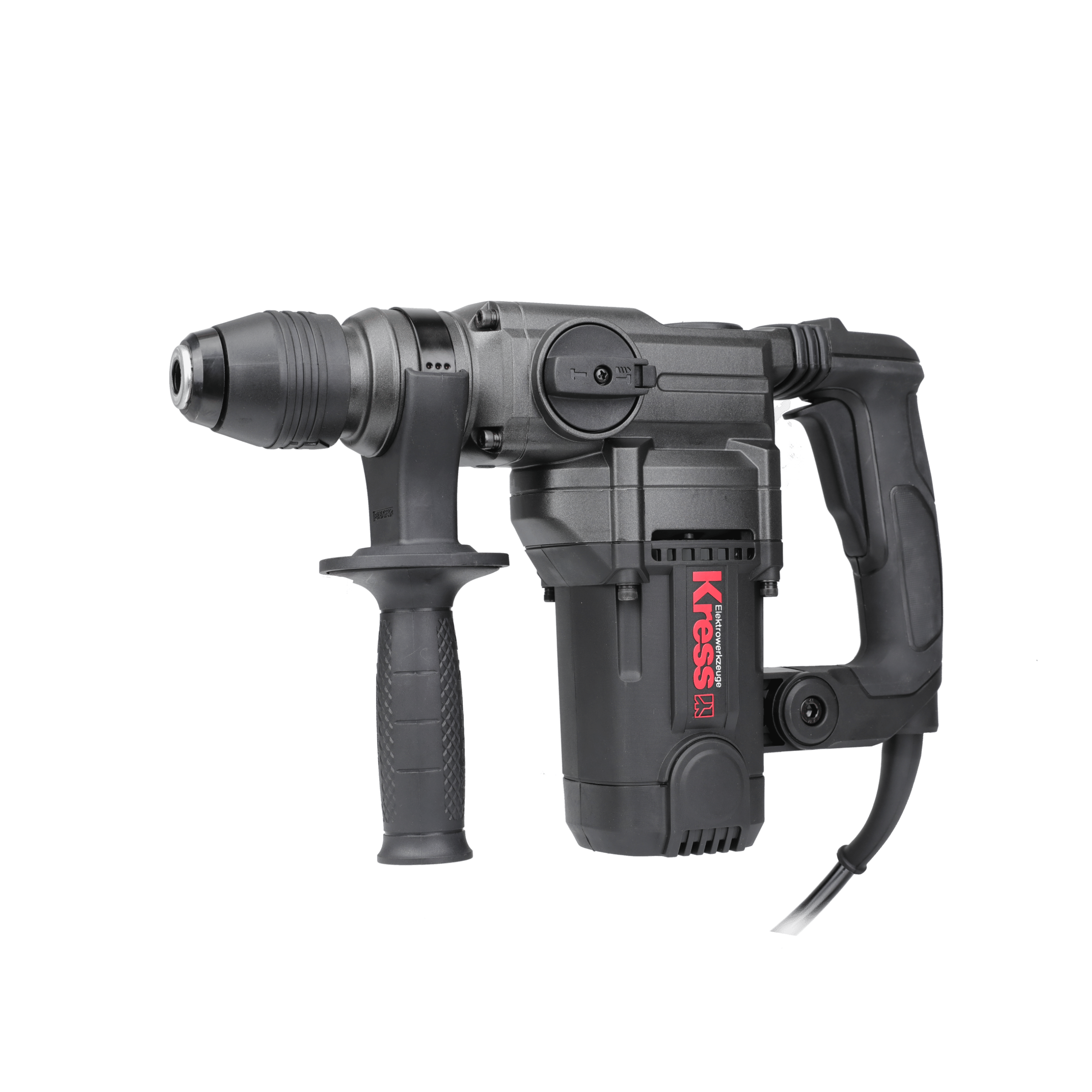 Der Kress KUX15P Bohrhammer mit SDS-PLUS Bohrfutter ist ein leistungsstarkes Elektrowerkzeug für den professionellen Einsatz. Der bürstenlose Motor mit einer Leistung von 1100W und einer Drehzahl von 900 UpM ermöglicht ein schnelles und präzises Bohren in Beton, Stein und Mauerwerk. Der Zusatzgriff sorgt für eine optimale Kontrolle und ein angenehmes Arbeiten. Das Set enthält einen Schraubenschlüssel und einen weiteren Zusatzhandgriff. Das schwarze Modell der Marke Kress verfügt über eine Bohrfutterspannweite von 28mm und einen Netzbetrieb mit einer Spannung von 230V. Eine Batterie ist nicht inklusive. Ideal für den Heimwerker und den Profi.